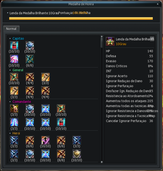 Pontos de Honra:O jogador pode obter Medalhas de Honra através da troca de pontos de honra, com uma taxa de 10.000.000 pontos por medalha.