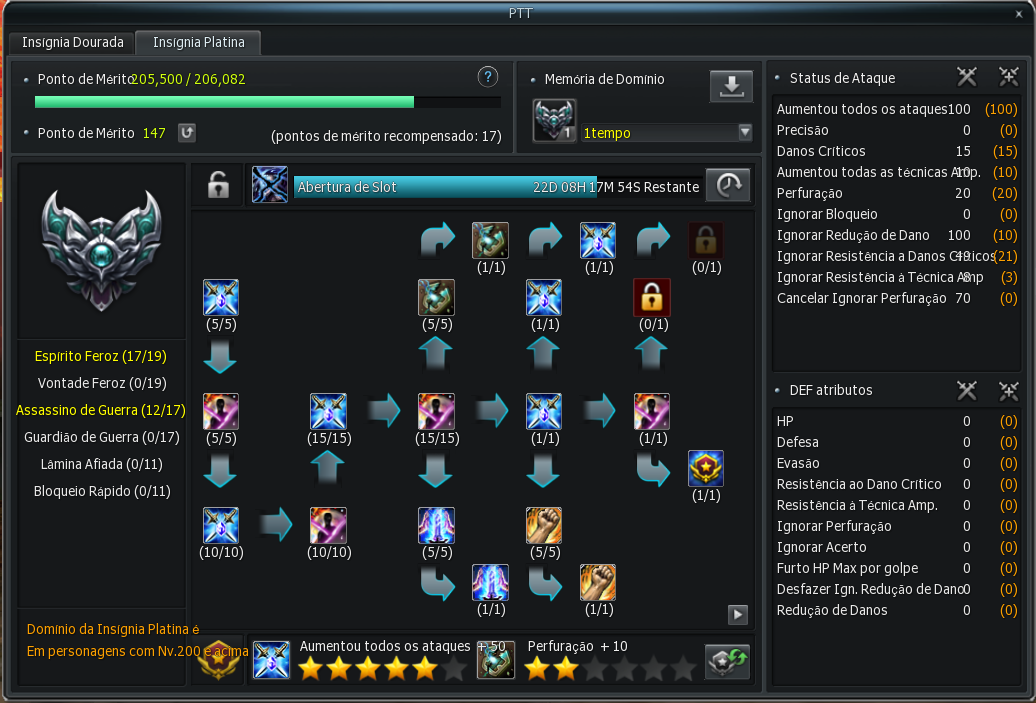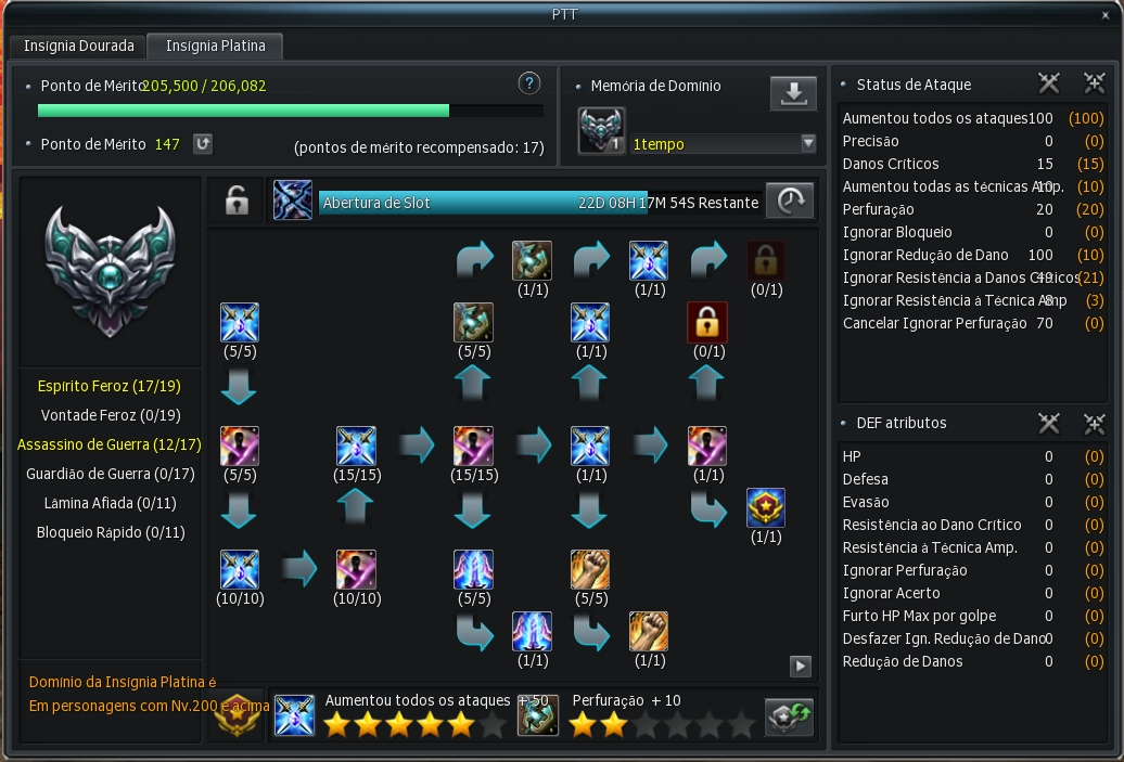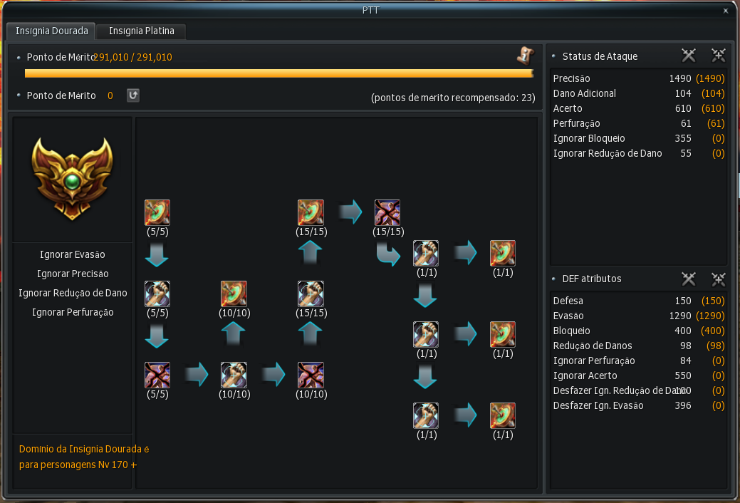 O sistema de Mérito permite que você aumente a Honra de todos os Personagens da sua conta de uma só vez, apenas indo TG com um personagem da conta.