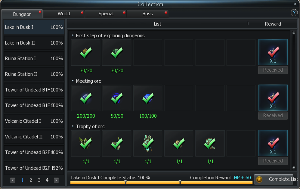 1. Item Collection: Collection is based on collecting specific items that can be obtained in various ways within the game, such as quests, events, monster drops, or purchase in the Auction House.